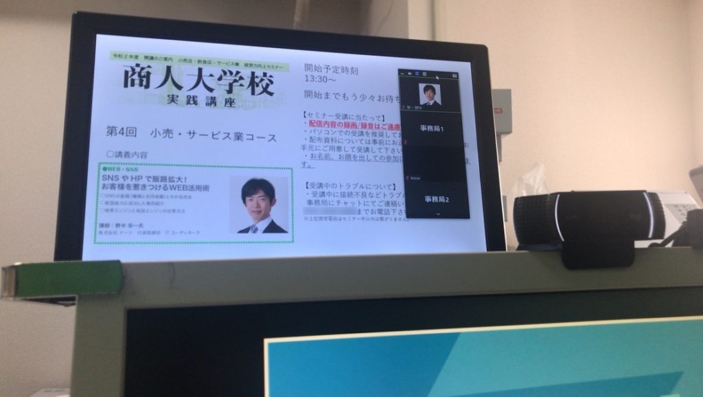 Zoomを使用したセミナー講師の様子