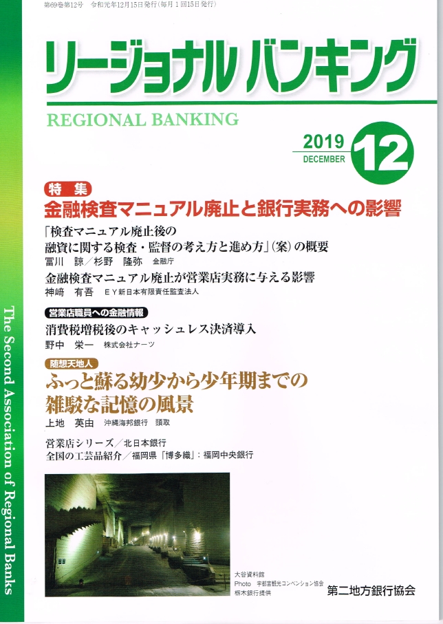 株式会社ナーツの代表 野中が、第二地方銀行協会の機関誌「リージョナルバンキング」で営業店職員への金融情報「消費税増税後のキャッシュレス決済導入」が紹介されました。